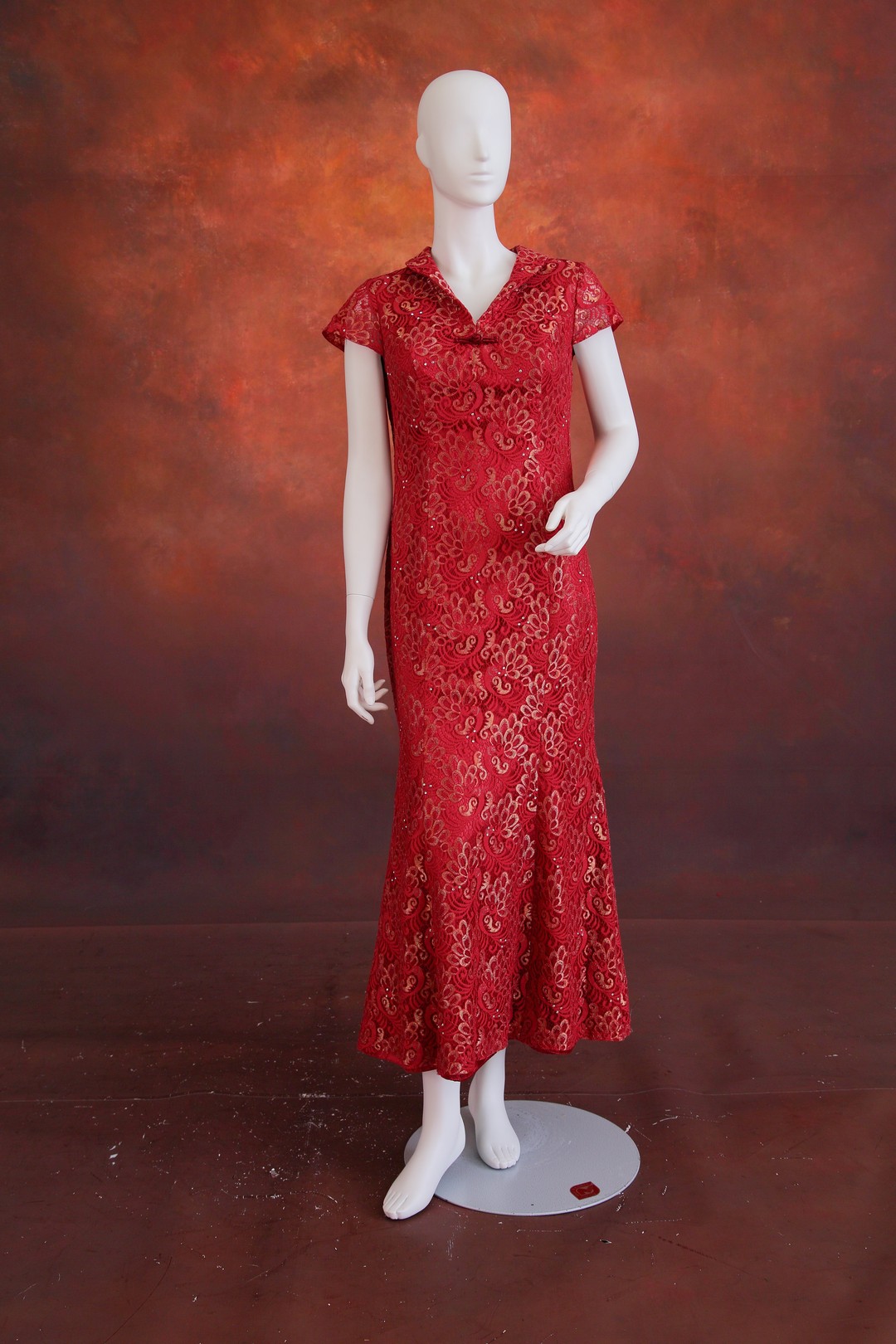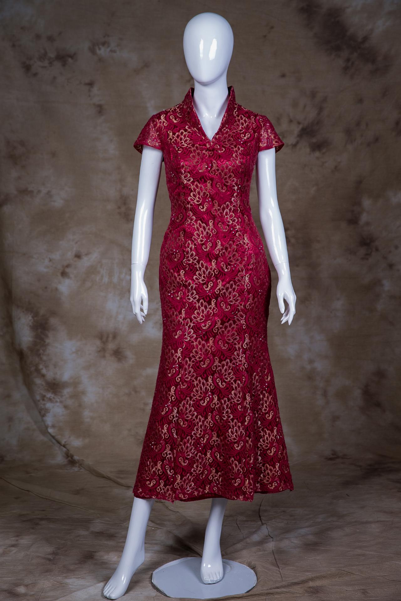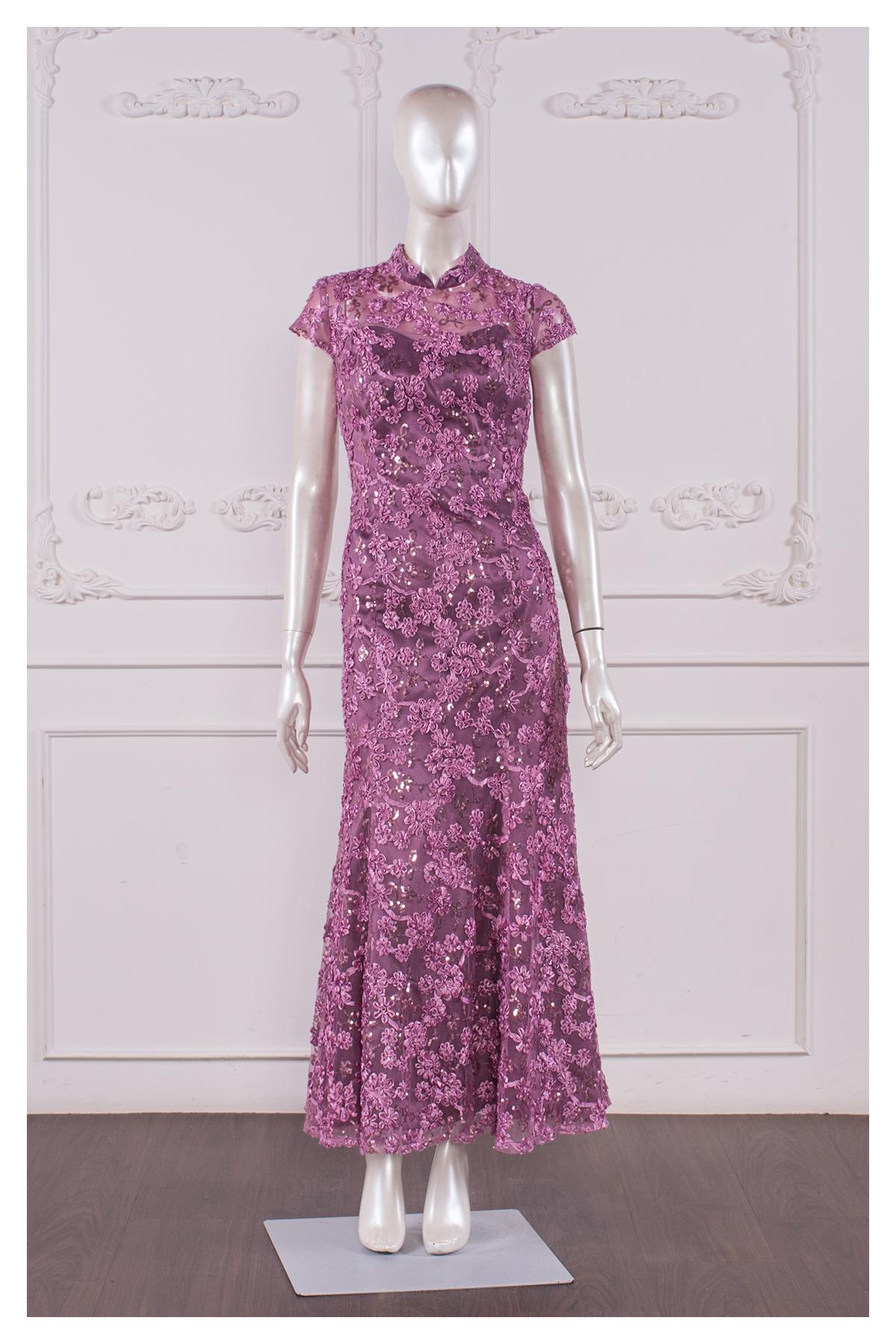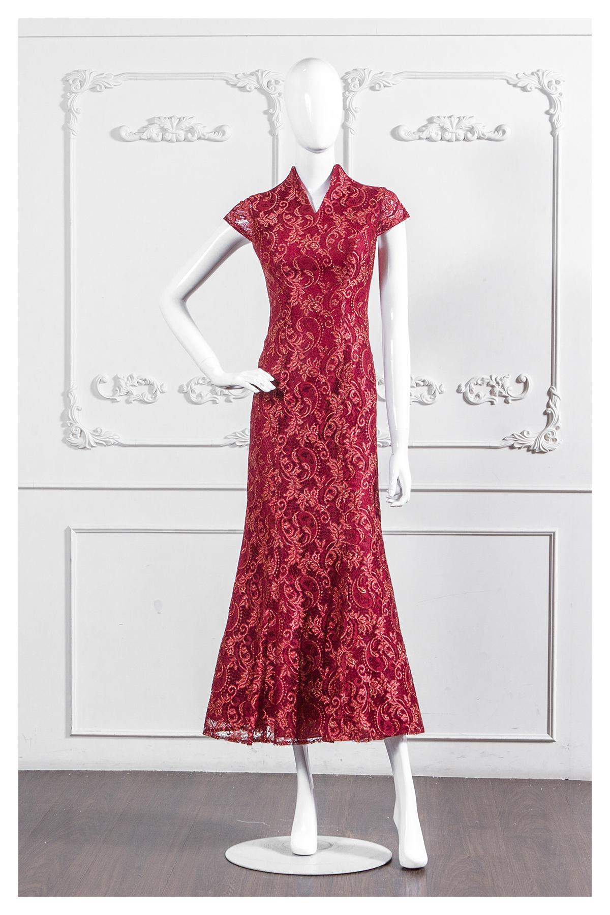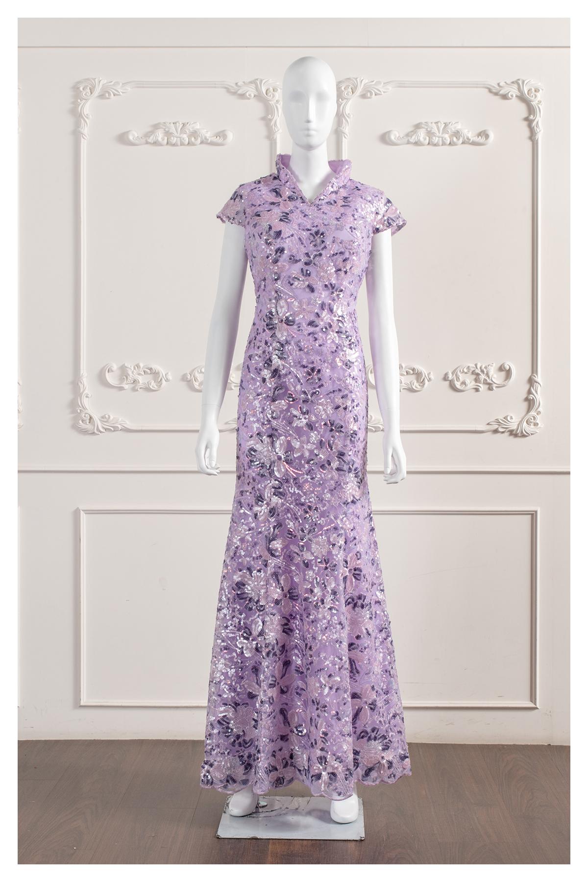 立領口·墜地(齊地)·短袖·齊地