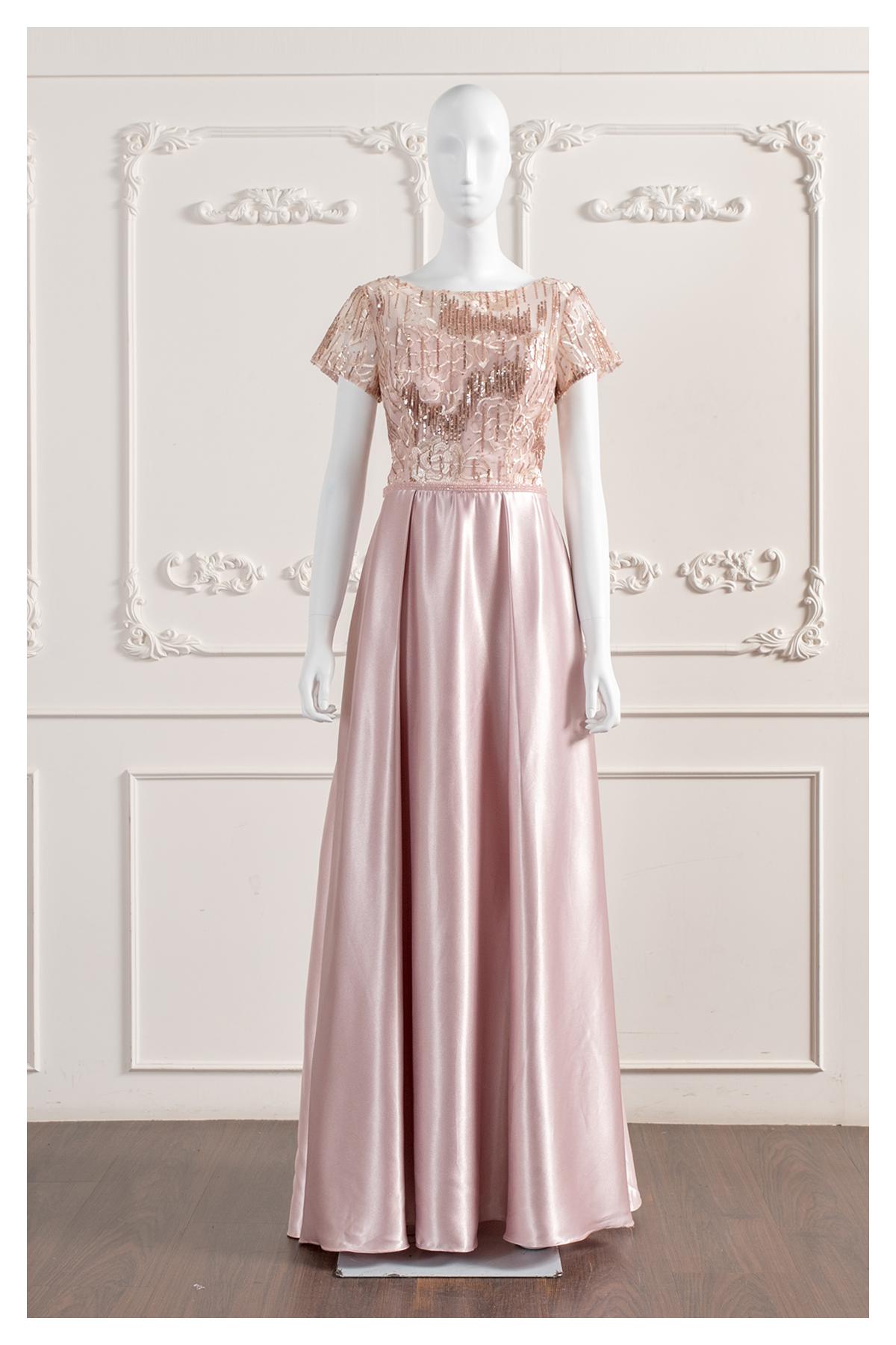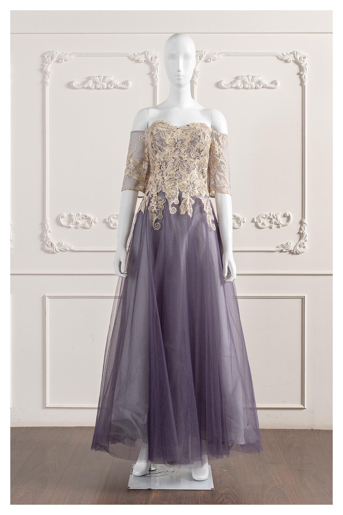 一字肩·雙肩·透明薄紗·墜地(齊地)·短袖·齊地