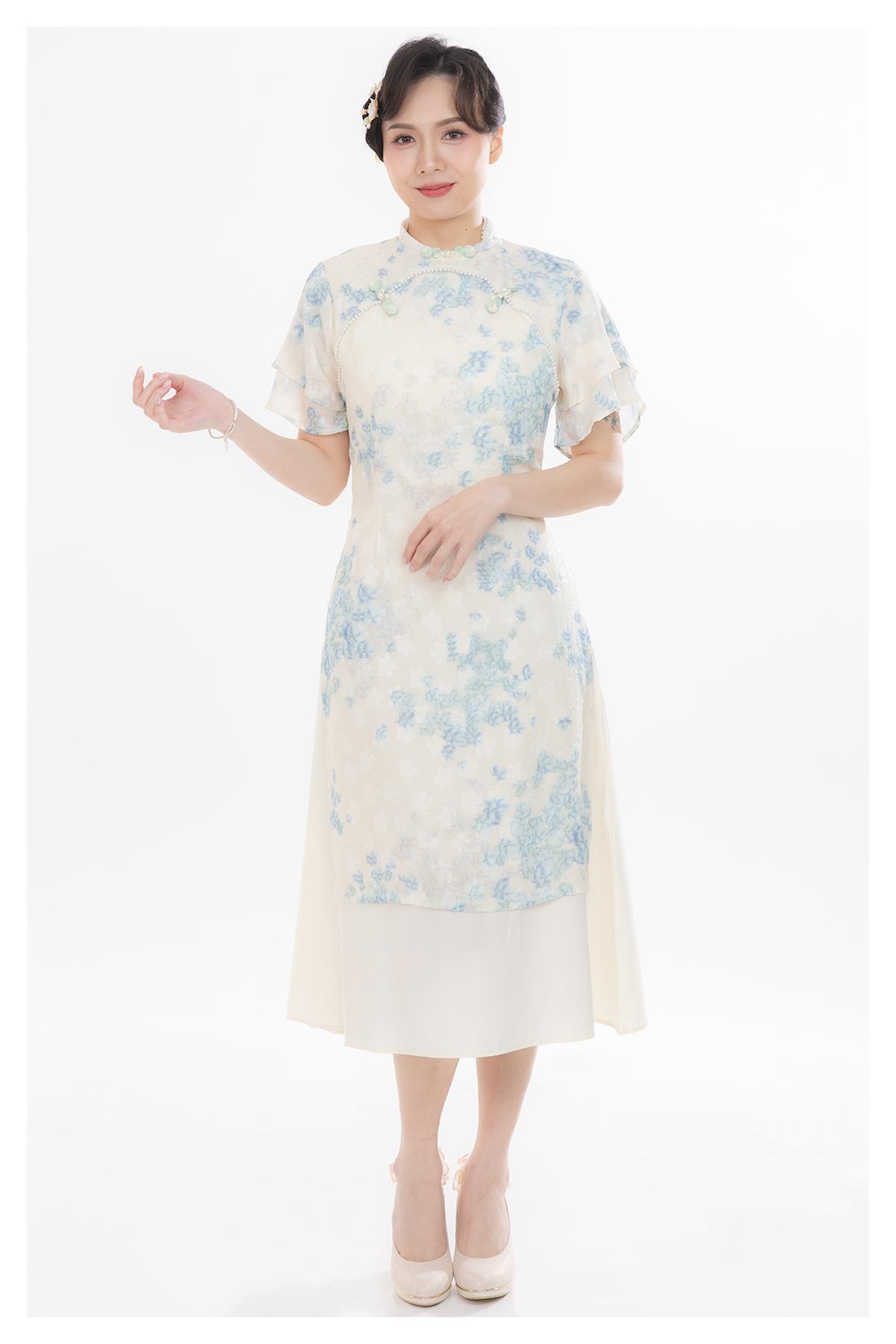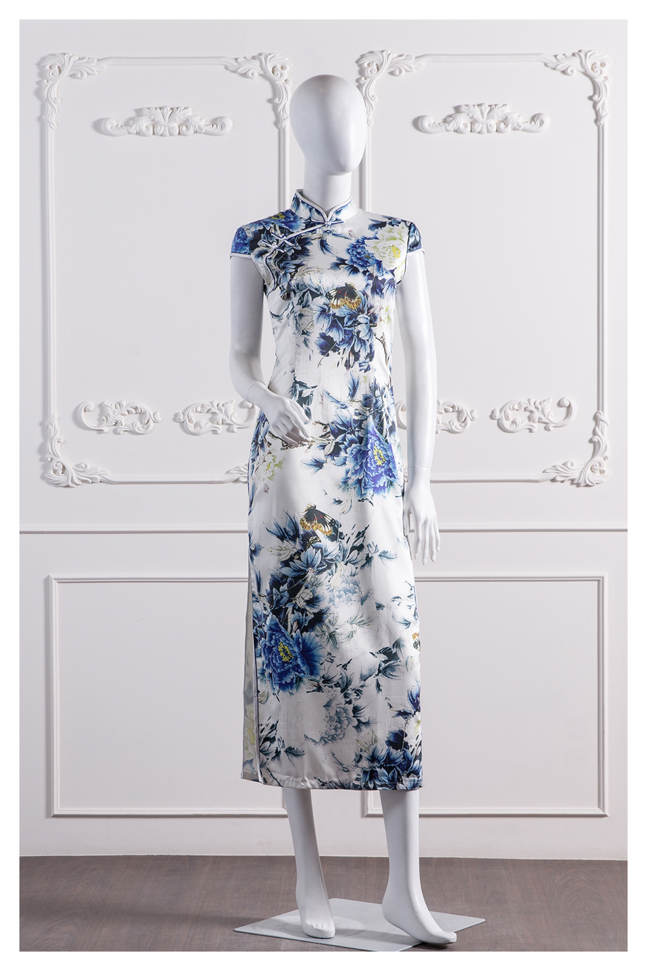 雙肩·立領口·高領·墜地(齊地)·短袖·齊地