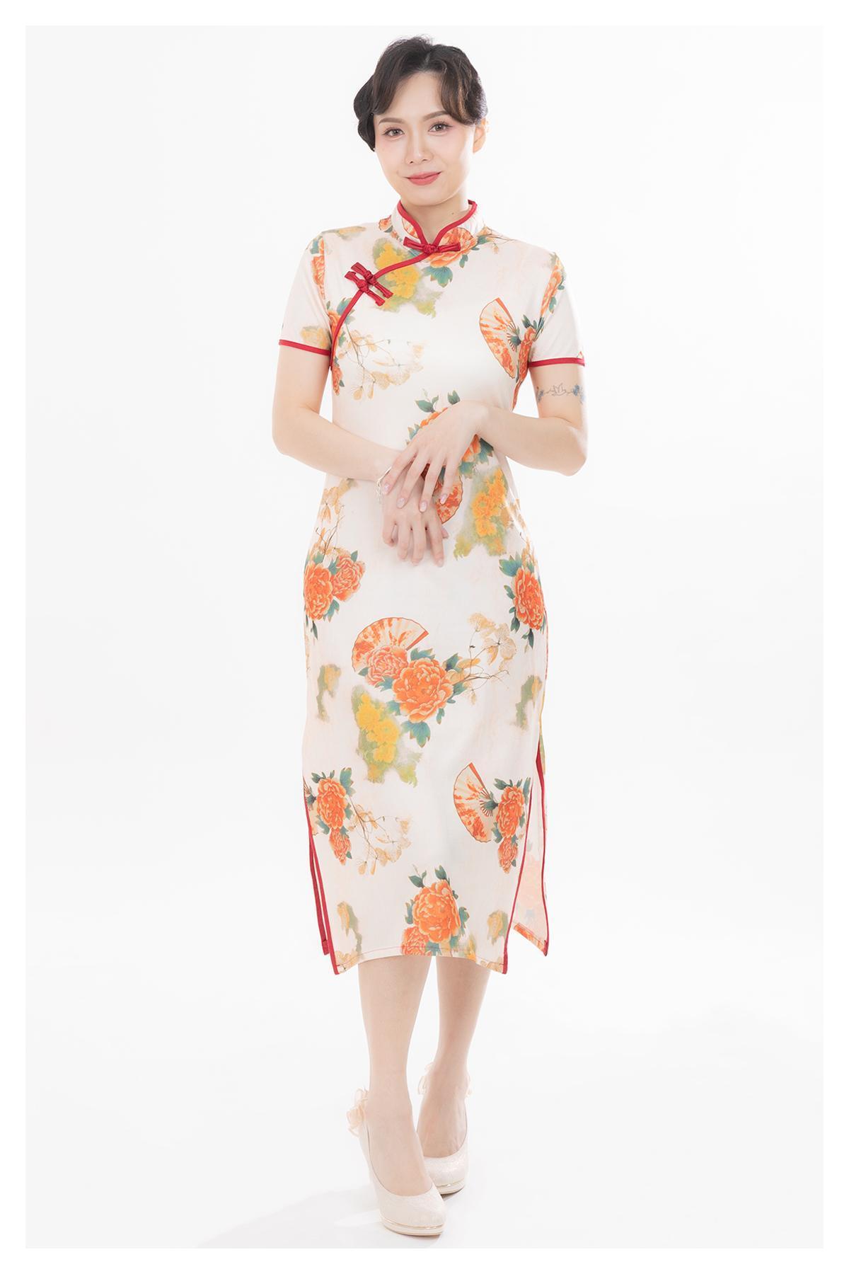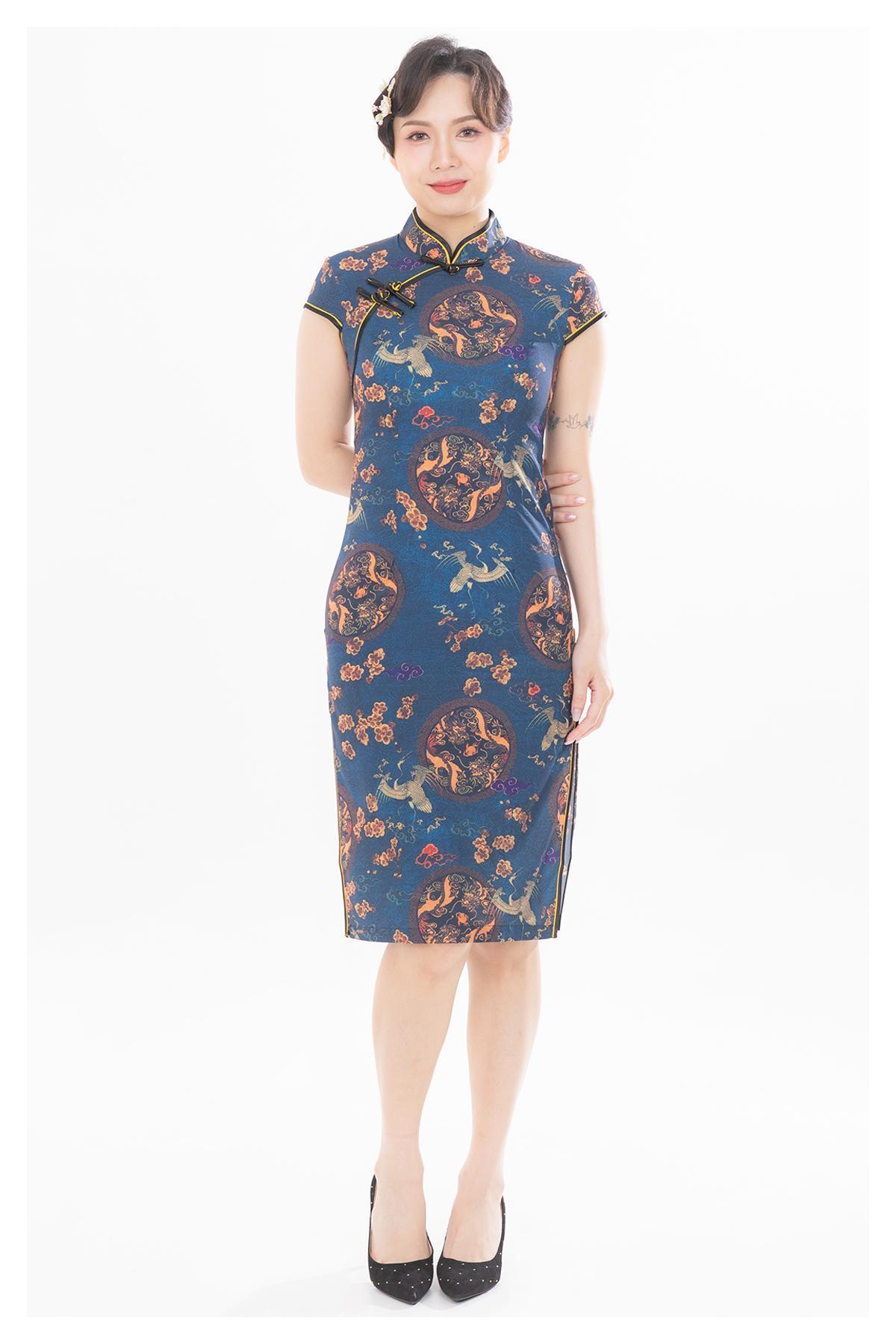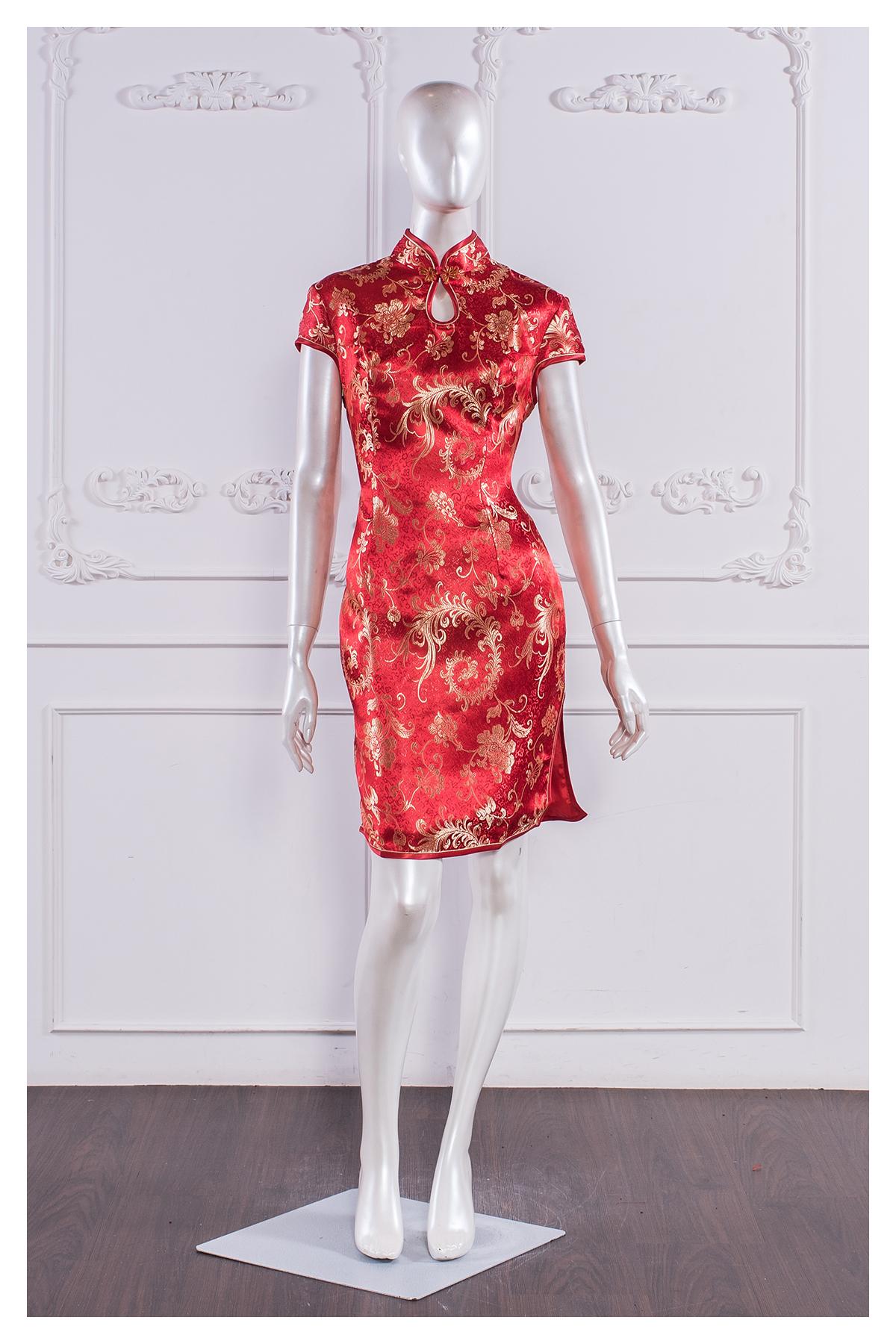 其他·立領口·修身·短袖·中長裙擺