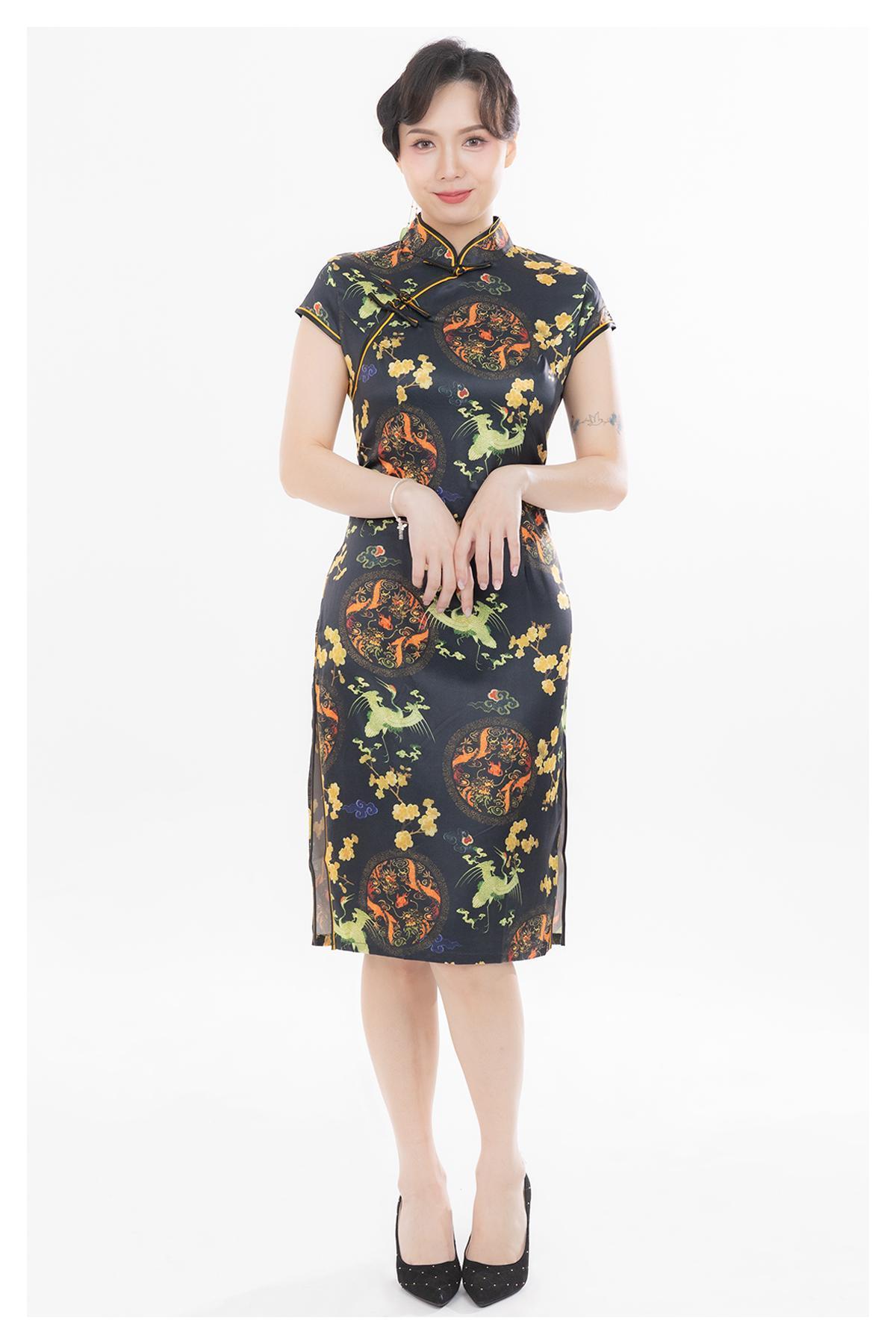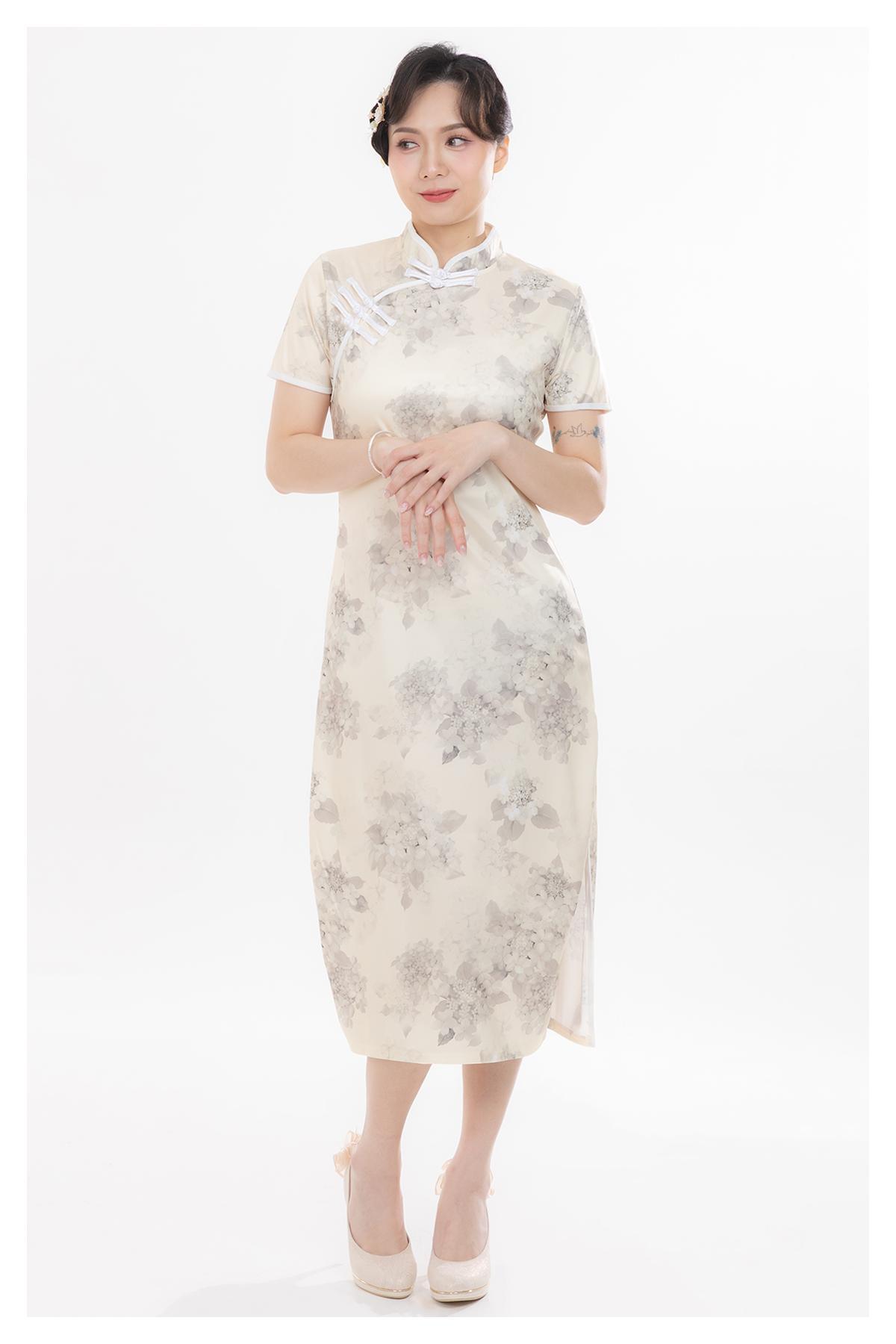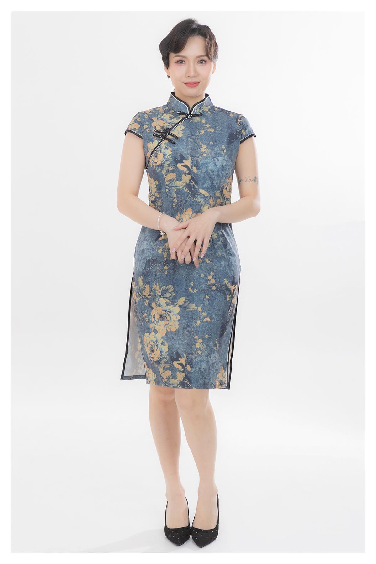 其他·立領口·修身·短袖·中長裙擺