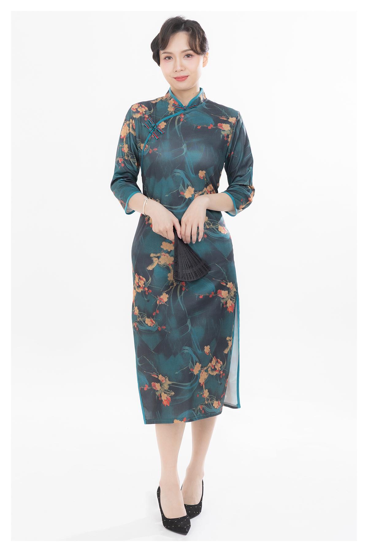 其他·立領口·修身·七分袖·中長裙擺